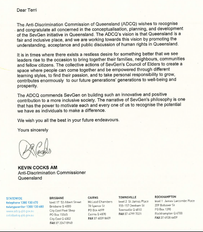 We are thrilled to share with you that SevGen received a letter of commendation from the Commissioner of the ADCQ Kevin Cocks.